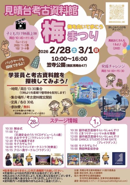 会場ではキッチンカーの出店があります。子ども縁日やふわふわドームが設置されます。地元の方々によるステージ企画も実施されます。資料館を探検する企画も予定されています。